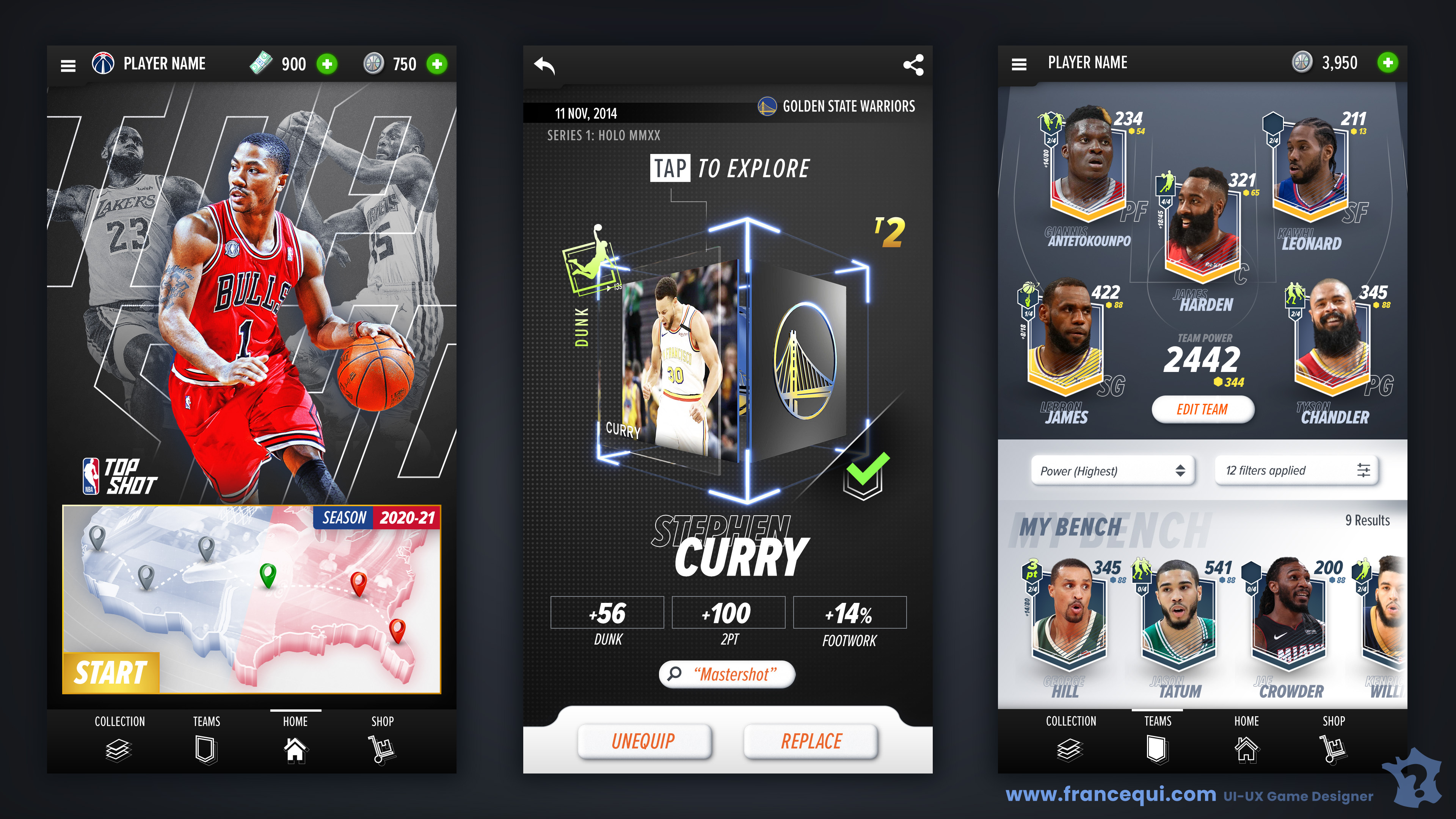 I found the challenge very cool, working with the NBA brand on a mobile game, all the team identities, trying to find what excites the player but also developing this kind of in-between app and game, for a NFT company. Despite what people can think about NFT and crypto, honestly as a UI designer, I enjoyed it and think it’s my best work so far!
