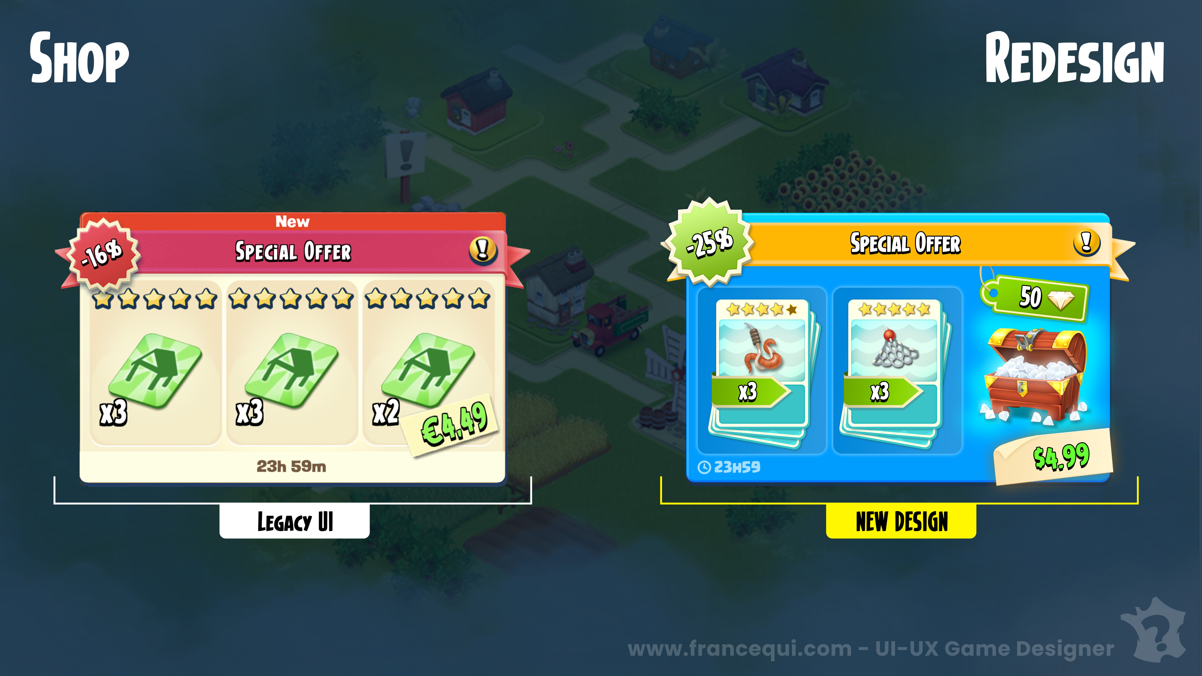 I found challenging working with the 7 years UI legacy, but I did my best matching the AD and adding more recent Supercell artistic guidelines.